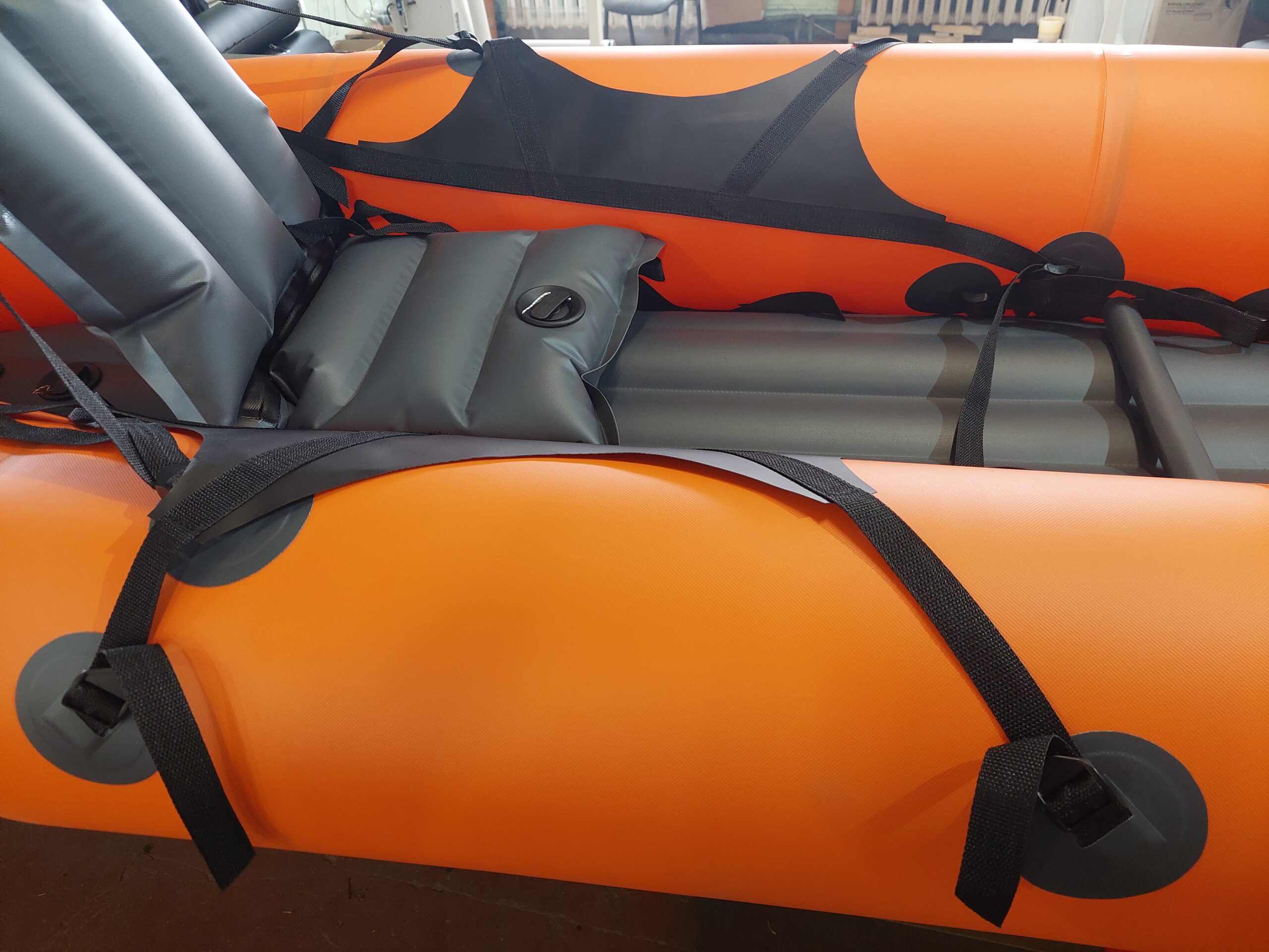 Четырехточечные бедренные упоры позволяют уверенно управлять пакрафтом на воде.