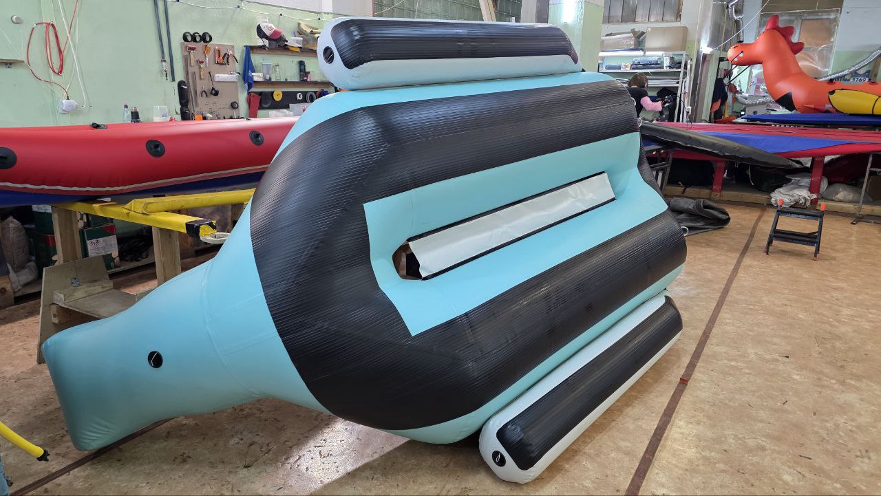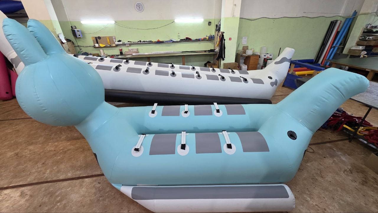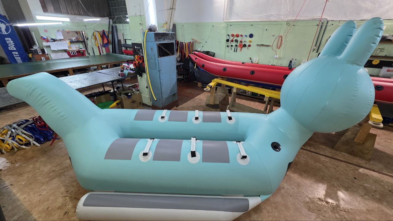 Инновация и качество: "Гибридный шов". Все швы выполнены сваркой на станке (сварка горячим воздухом), двойная проварка шва.Надежность: зимний банан сделан из многослойной армированной ПВХ ткань лучшего качества; элементы крепления буксировочного фала – выполнены из литого D-кольца. Нижняя поверхность баллонов банана усилена ПВХ профилем. Безопасность: каждый элемент конструкции аттракциона продуман специалистами и учтены все требования безопасности, чтобы Вам и Вашим гостям оставалось только получать удовольствия от катания. Надувной зимний банан можно изготовить из ПВХ повышенной прочности толщиной от 1050гр/м2 или защитить нижнюю часть баллонов дополнительным слоем ТПУ(TPU) пленки.